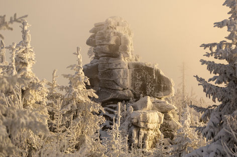 Charakteristisch für die Gipfelbereiche sind riesige Felsblöcke aus Granit, ein Urgestein.